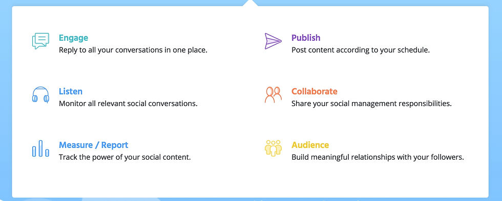 A high level overview of the platform benefits are below, but if you are just starting out this might be overwhelming. If you only manage one or two pages or profiles, you might find one of the previous tools more approachable to start with. But if you want to dive right in, they've got a number of training resources to help you get going!